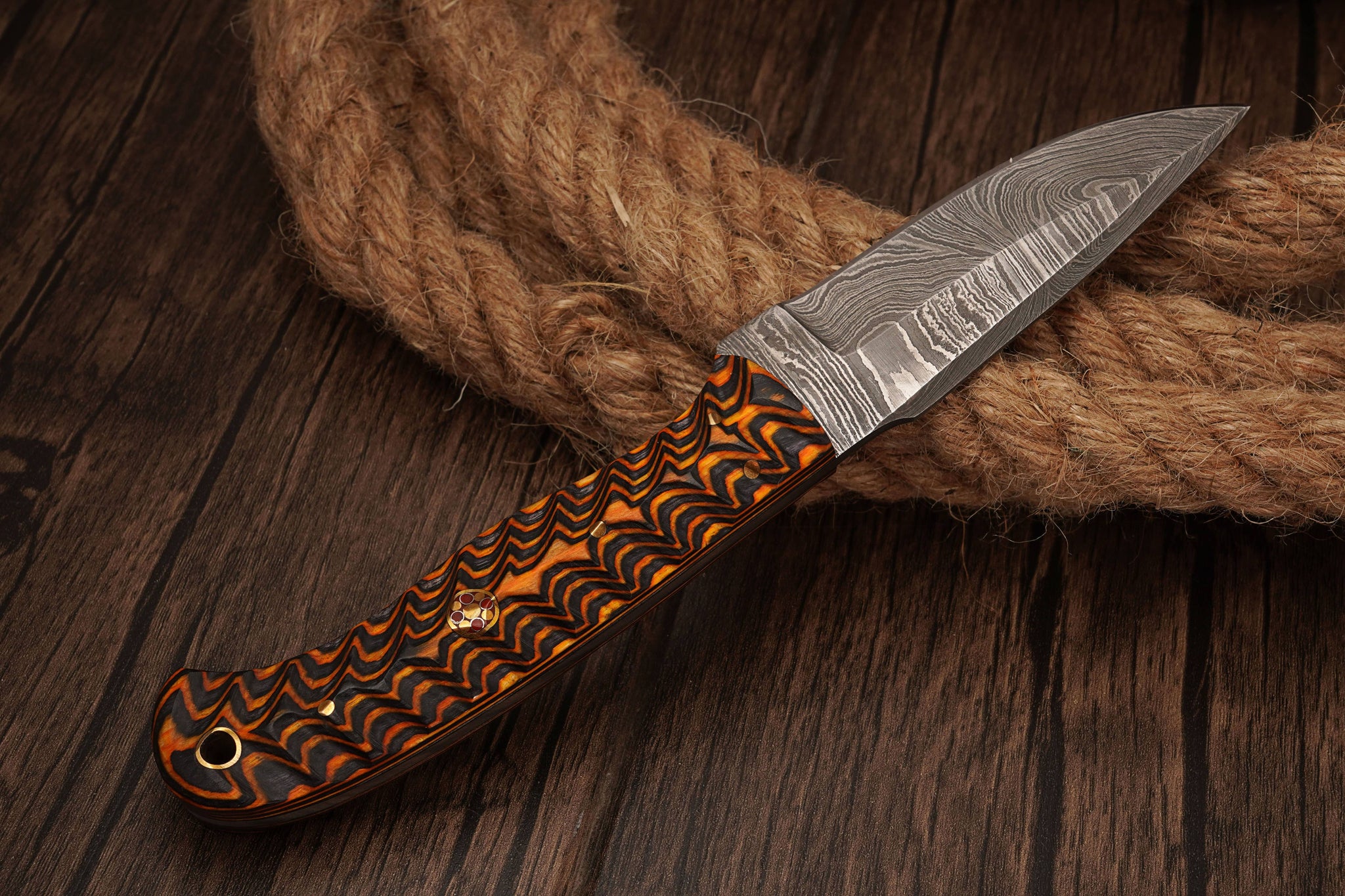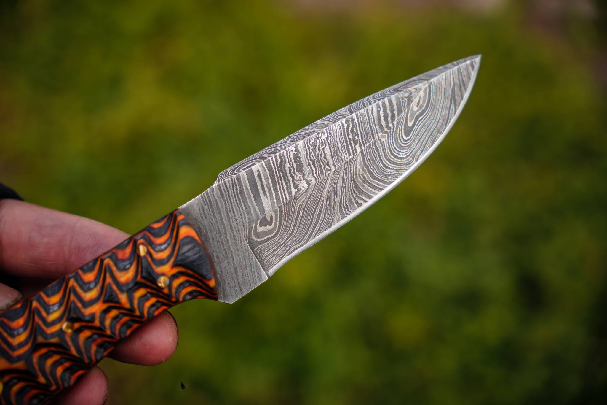 【SOLID, SHARP & APPEALING】- Truly hammer forged damascus knife; composed of 1080 and 15N20, folded 5 times, starting from 9-layers into a Twist pattern of 300 layers of damascus steel. Shatter proof to withstand any cutting task