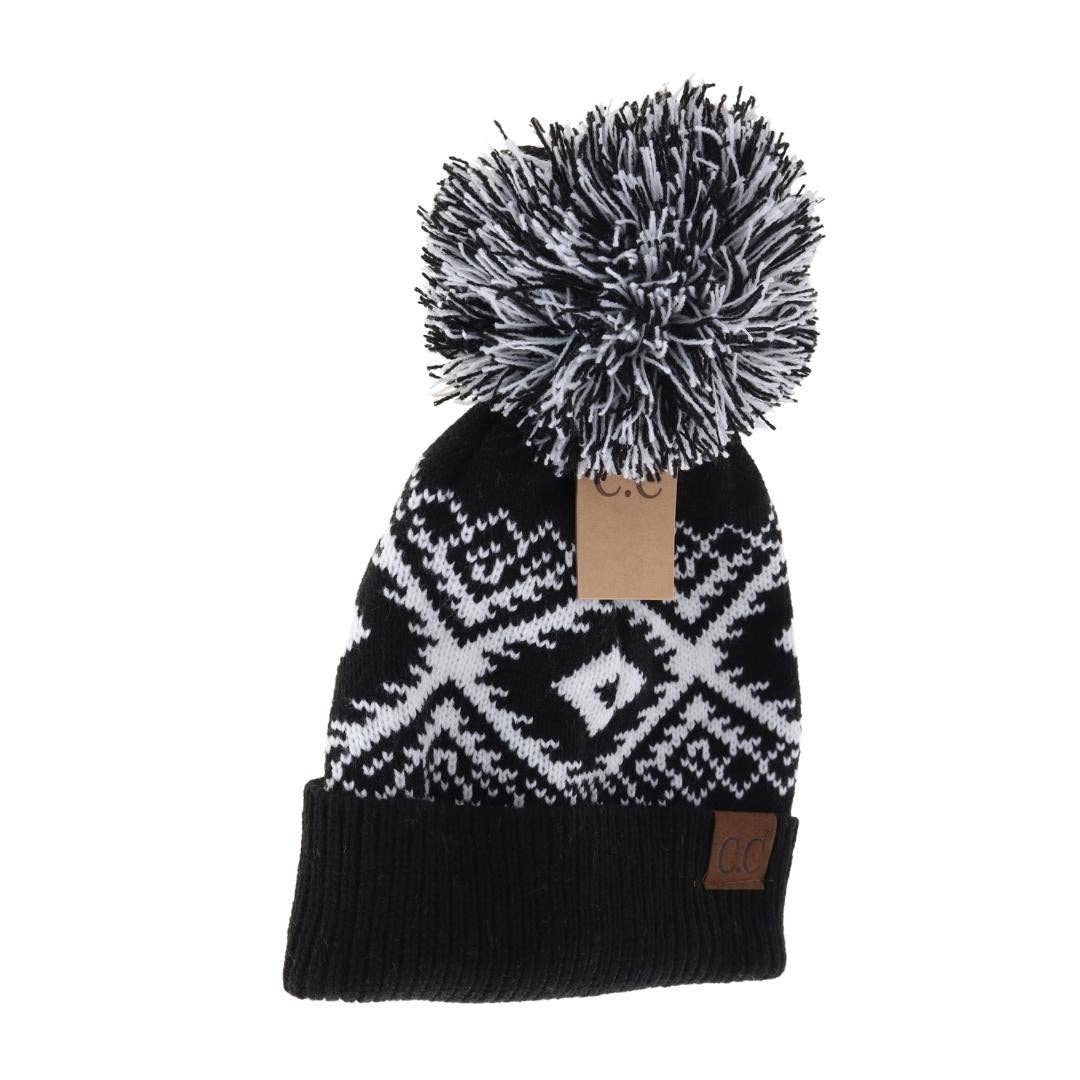 This Aztec inspired pattern is classy and beautiful. We added a thick multi-colored yarn pom to top it off! * One Size. * HAND WASH ONLY. Lay flat or Hang to Dry