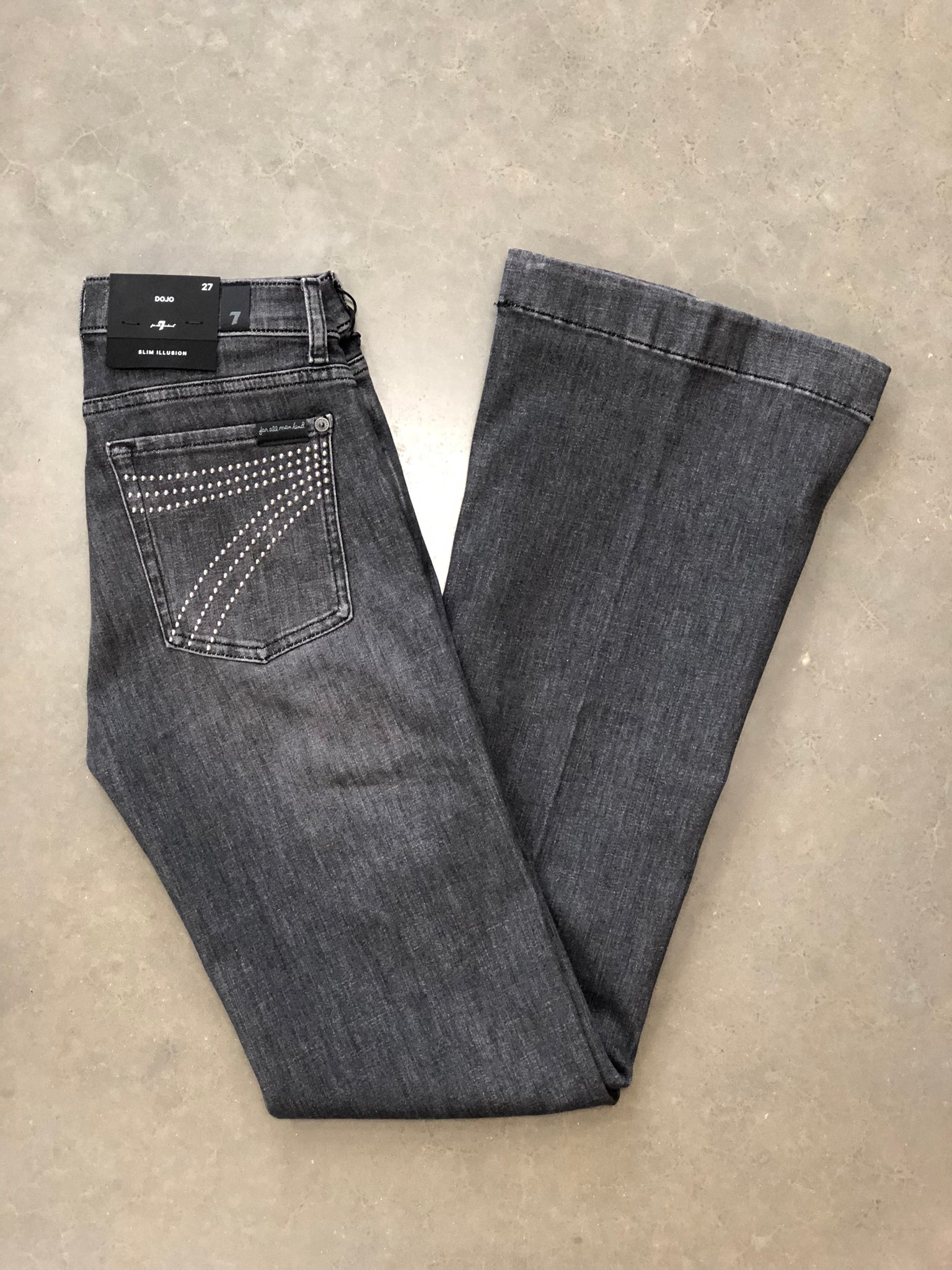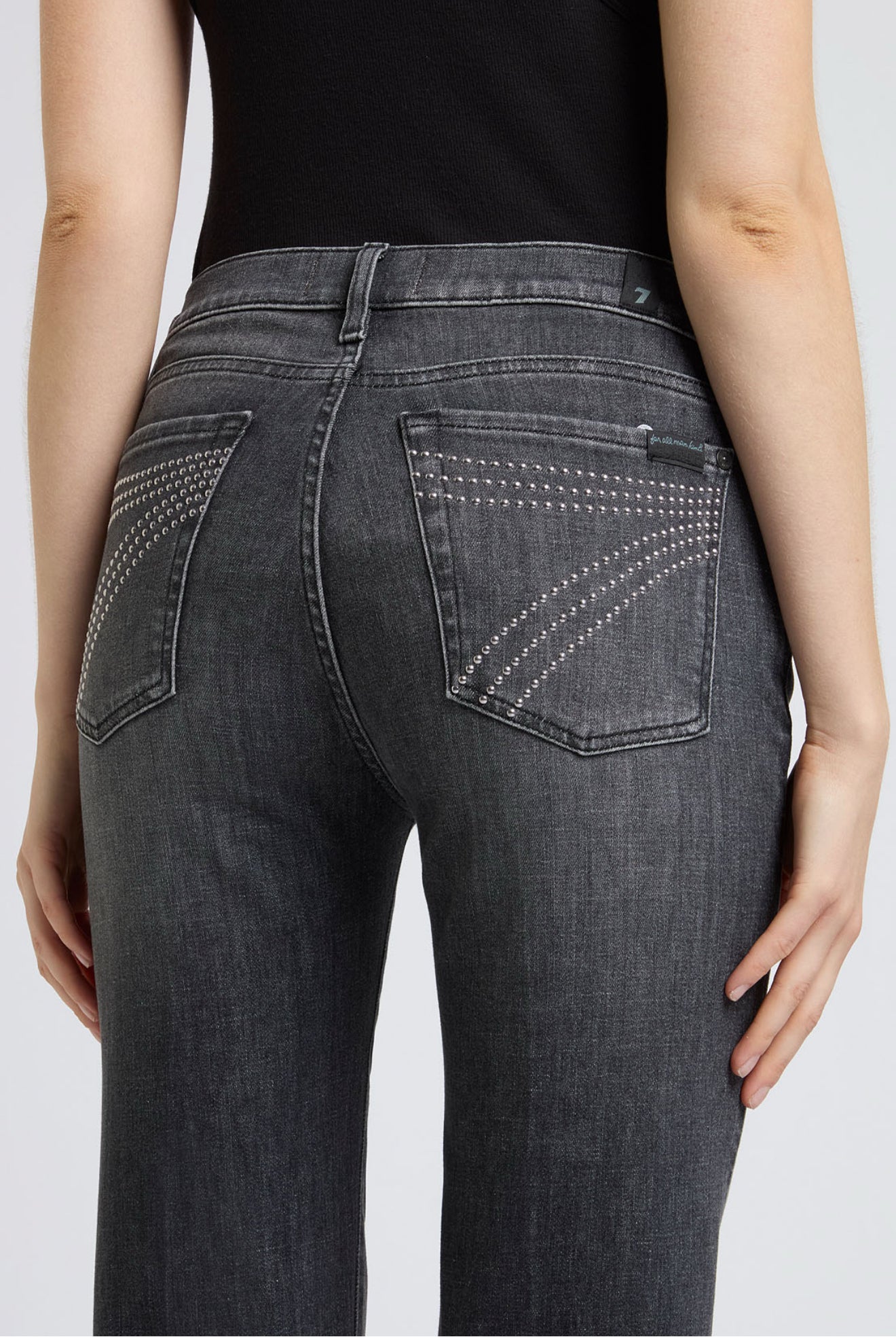 - Studded signature 7 back pocket detailing