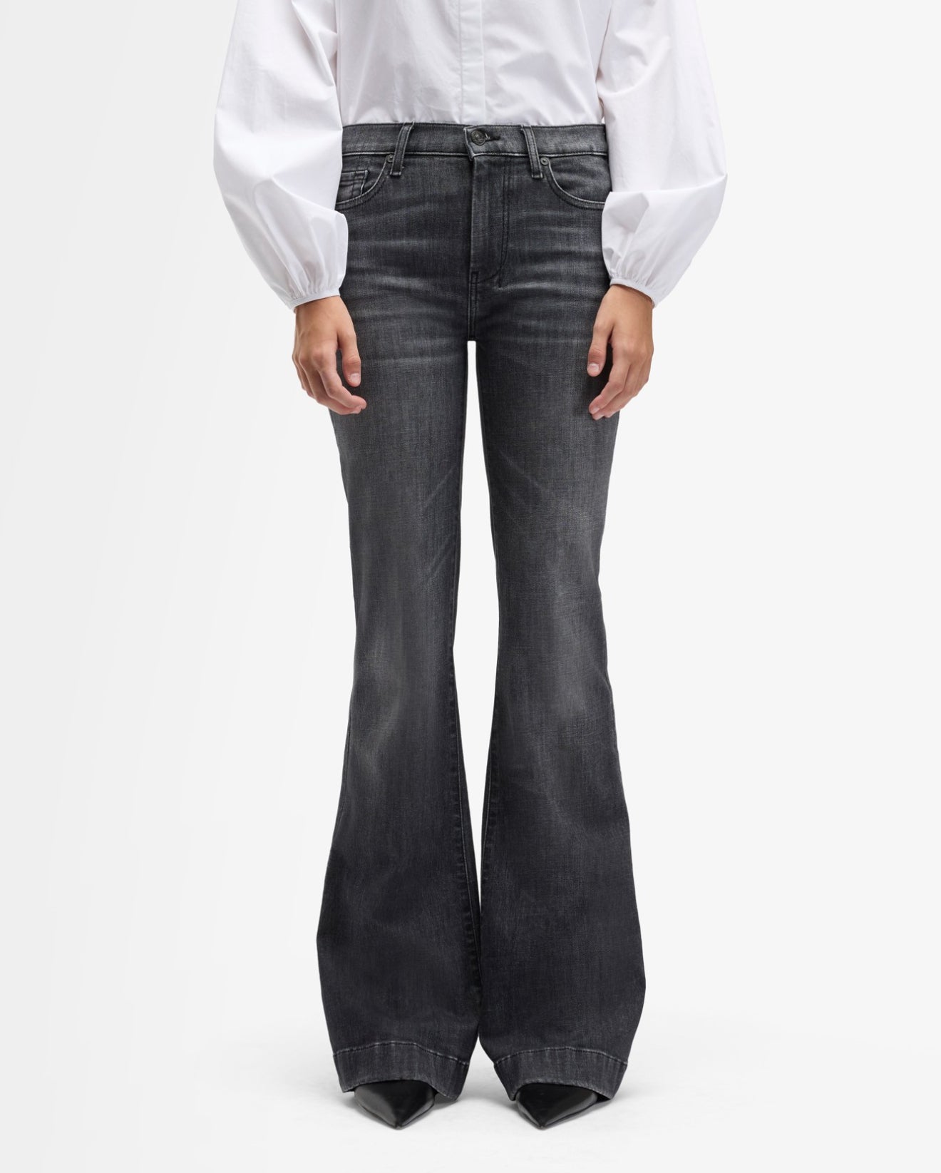 Fits like: Fitted through the hips and thighs. This mid rise denim has a wide, full-length leg and a subtle flare for a long, lean silhouette.