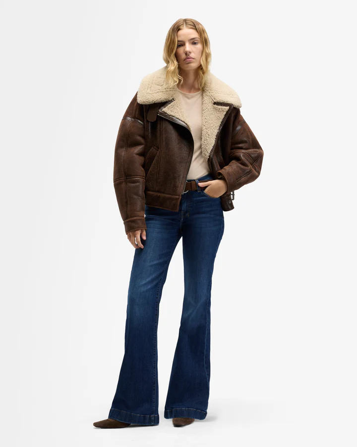 Fits like: Fitted through the hips and thighs. This mid rise denim has a wide, full-length leg and a subtle flare for a long, lean silhouette.