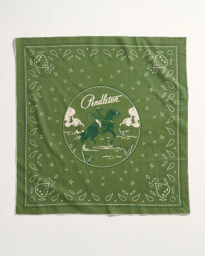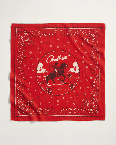 Made from 100% recycled cotton, these three bandanas feature a vintage-inspired rodeo scene and a classic Pendleton logo.