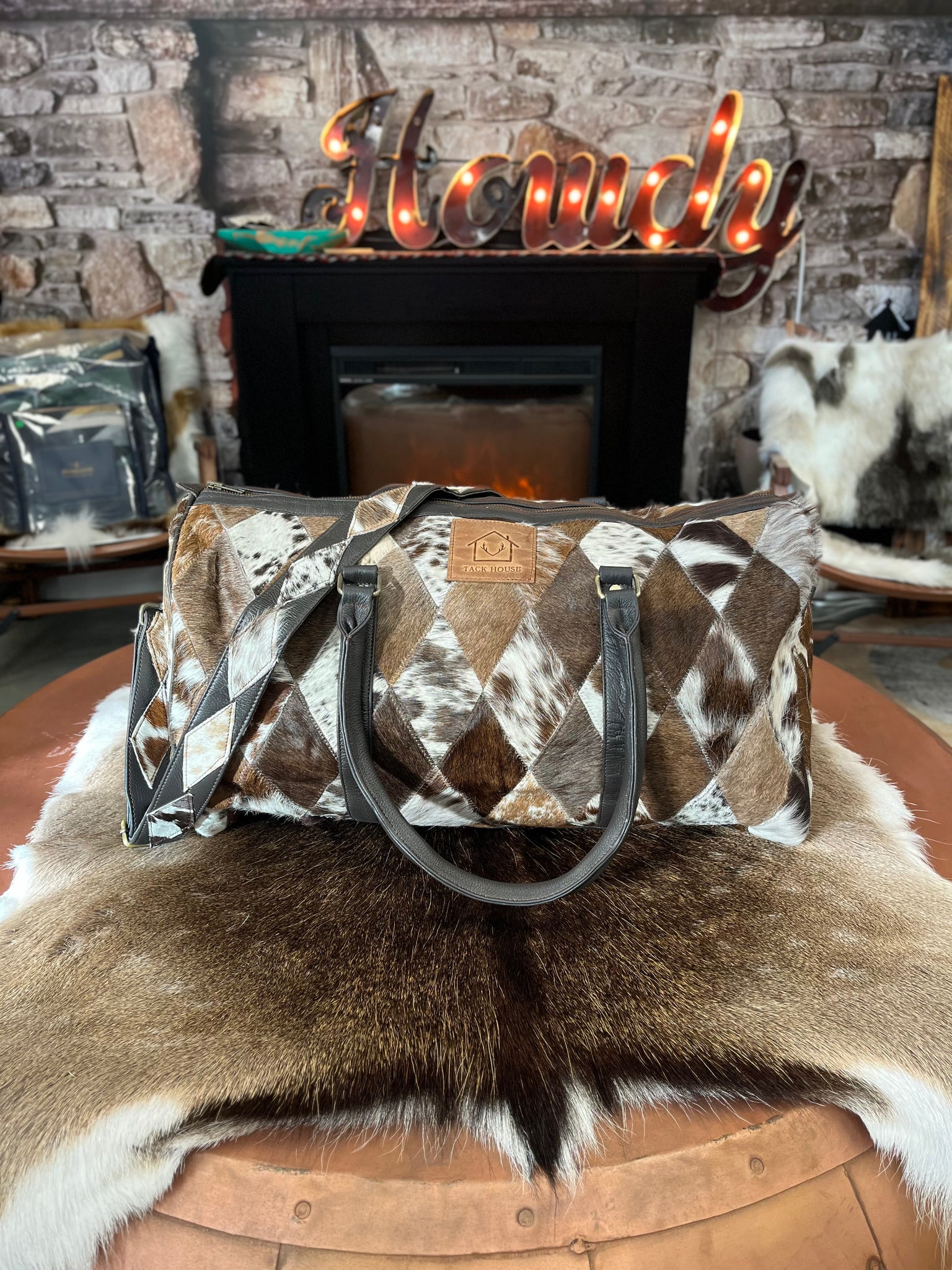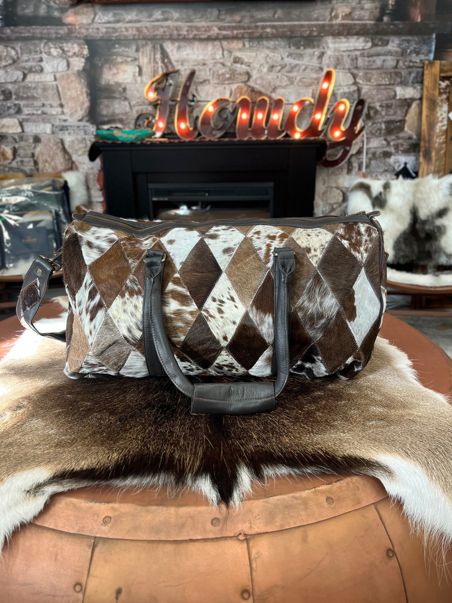 Genuine Cowhide and Leather bag. Includes long shoulder strap.
