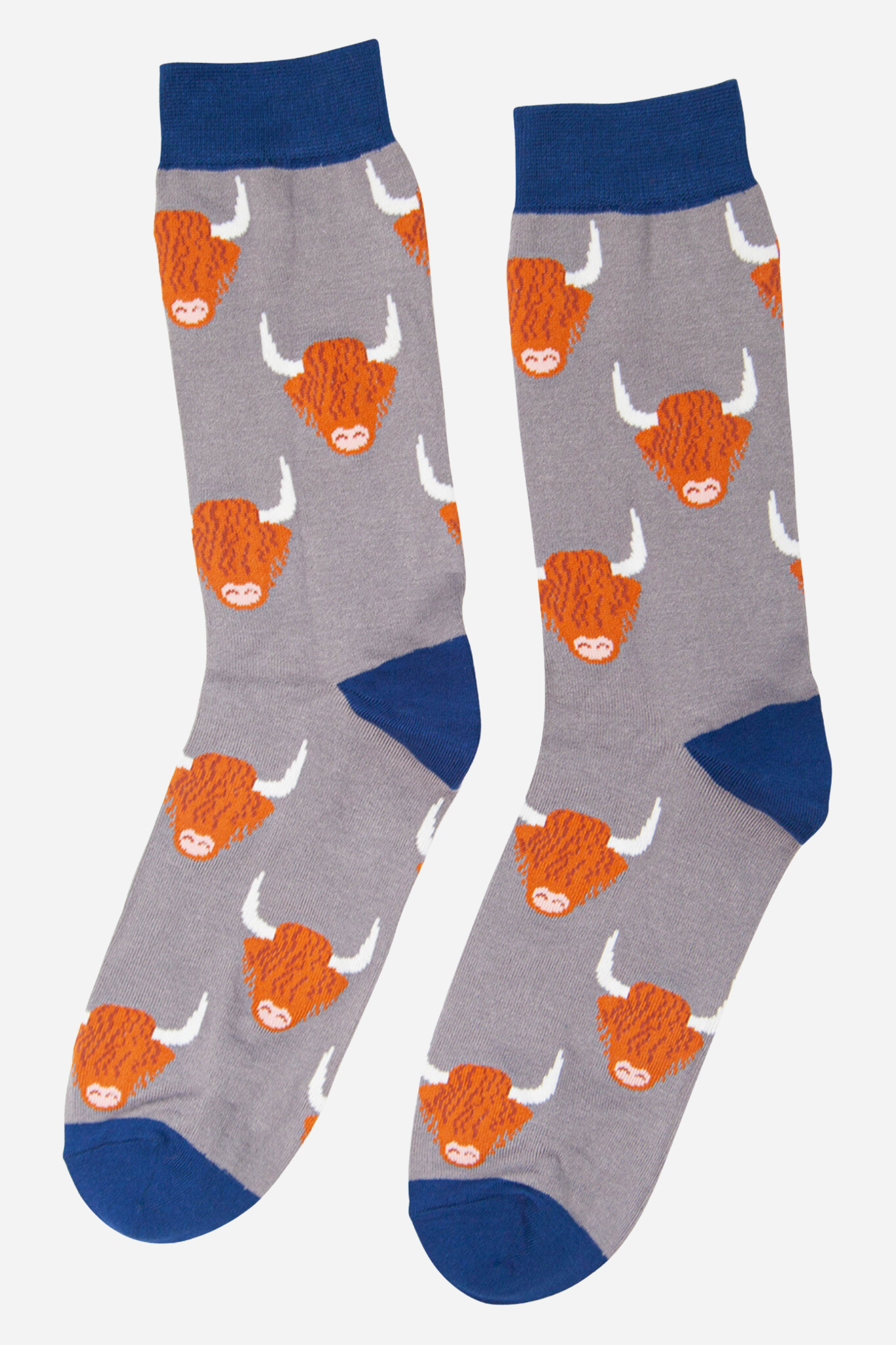 Grey Men's Highland Cow Print Bamboo Socks