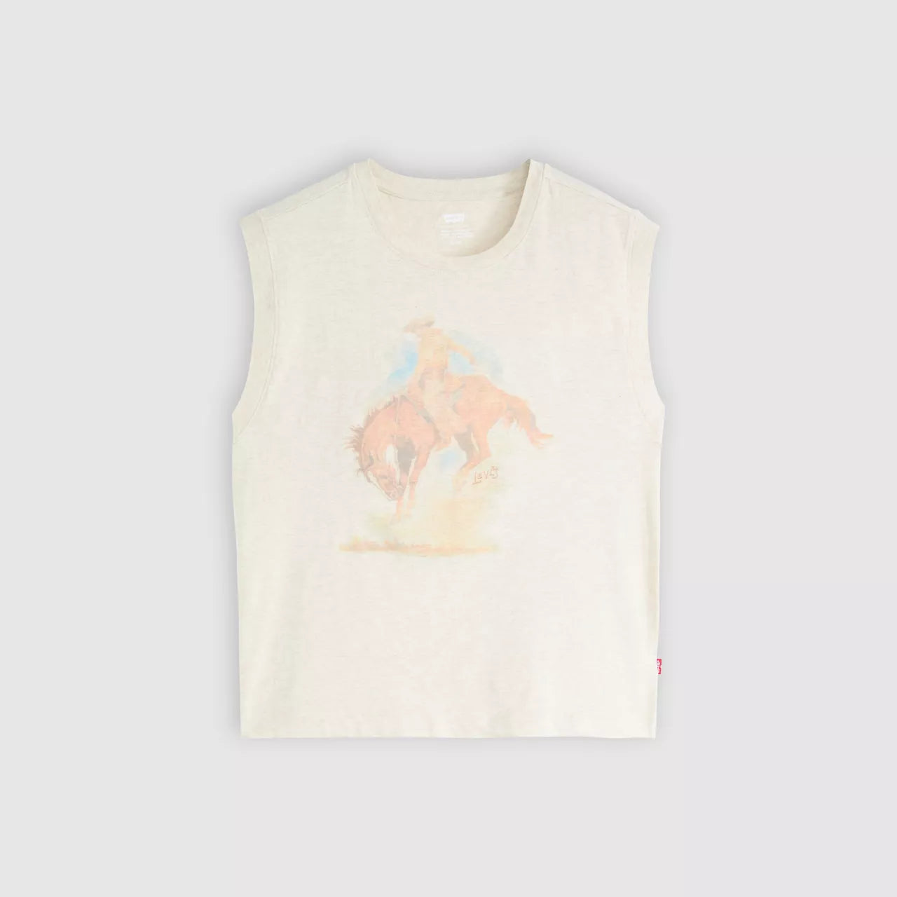 LEVI'S® WOMEN'S GRAPHIC BOXY TANK - Western Archival Faded Cowboy Oatmeal Heather