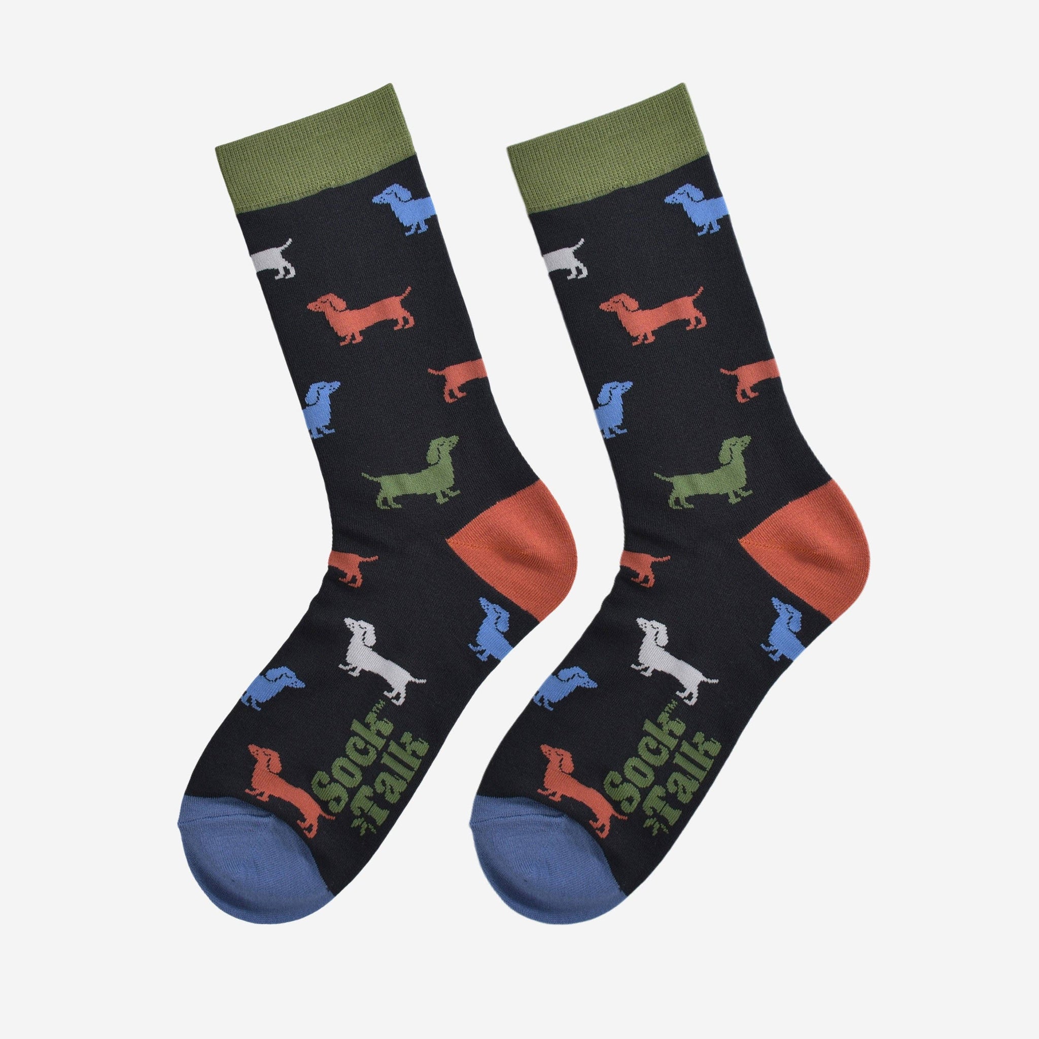Men's Bamboo Socks - Black/Green, Sausage Dog