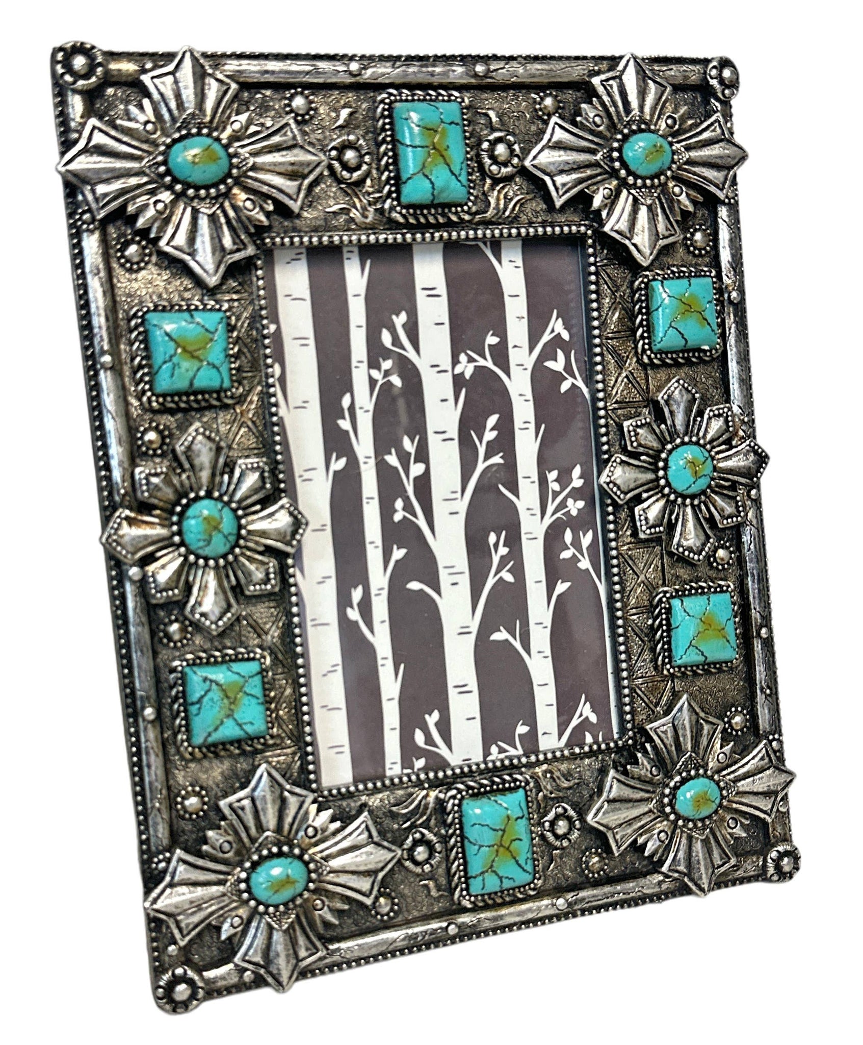 Resin Metal Concho & Turquoise Stones 6” x 4” Picture Frame