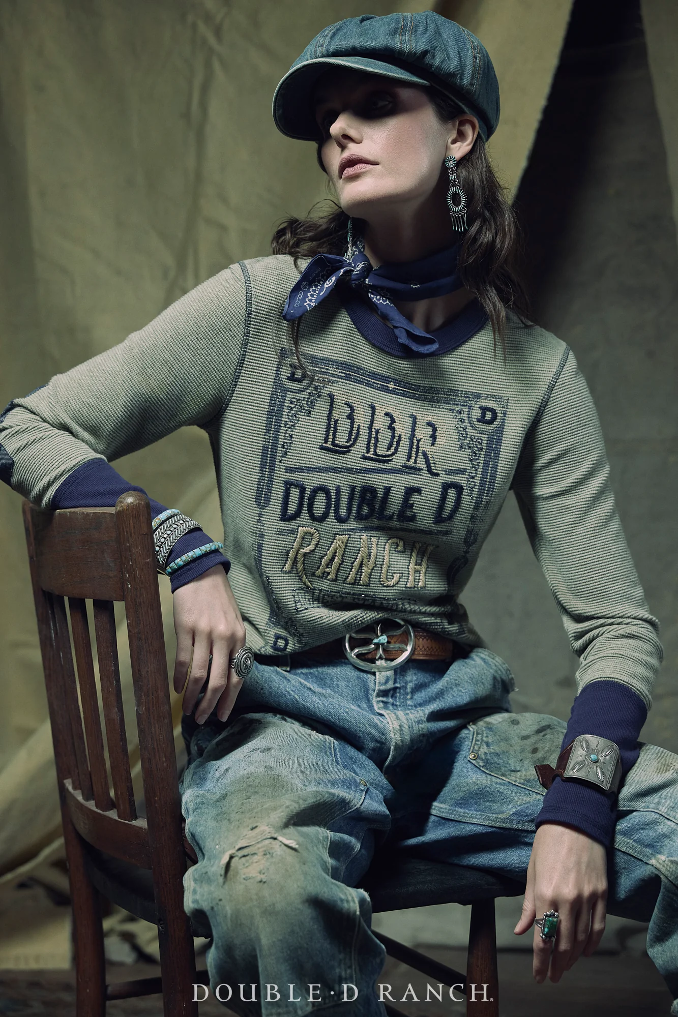 The color is beautiful, the waffling has an appeal all its own, and the contrasting quarter-sleeve cuff takes it to the next level. Plus, we know our gals can’t get enough of a good embroidered tee, and the design team did a remarkable job on this scaled up stamp-style graphic.