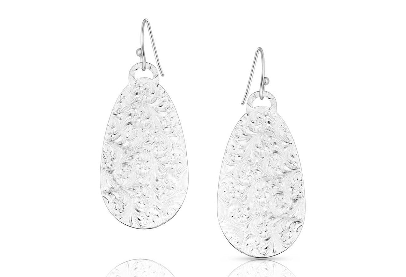 The Wildflower Impressions Earrings embody the beauty of a field of blooming wildflowers. The incredible earrings are created with an oval silver tone and hang from hypoallergenic French wires. Detailed engraving creates the earrings. Within the engraving is a large flower framed by whisps that add grace and elegance to the design. A deep antiquing brings out each intricate line in the engraving of the Wildflower Impressions Earrings.